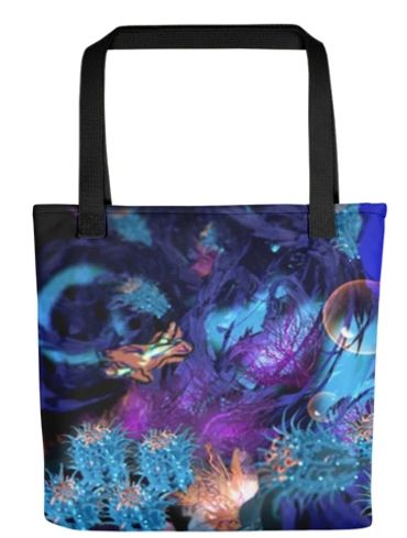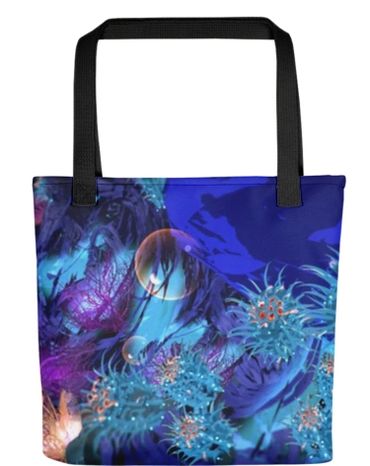 The all-over printed tote is printed using the sublimation technique.