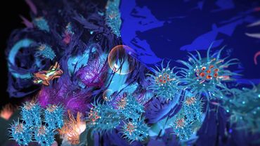 While swimming through the artists rendition of an underwater virtual reality coral reef, encountering dozens of living creatures, we've captured a moment in time to take with you.