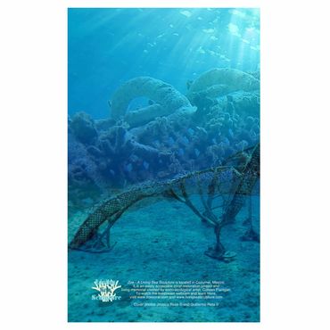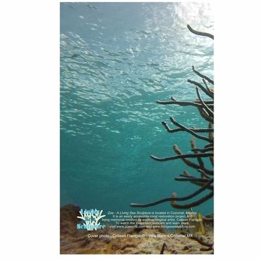The cover features a vibrant composite of photos by Jessica Rose and Guillermo Reta, two wonderful volunteers who work on the coral reef sculpture located in Cozumel, Mexico.